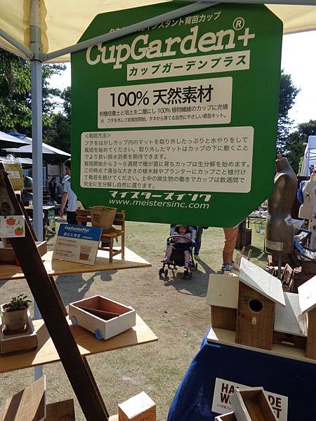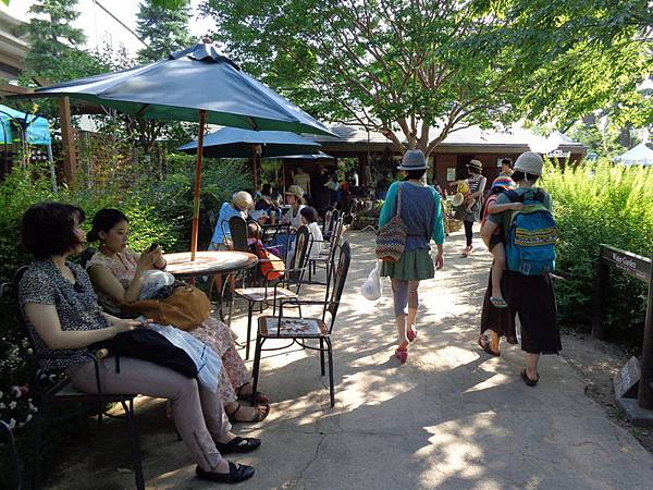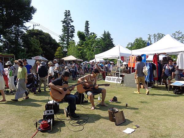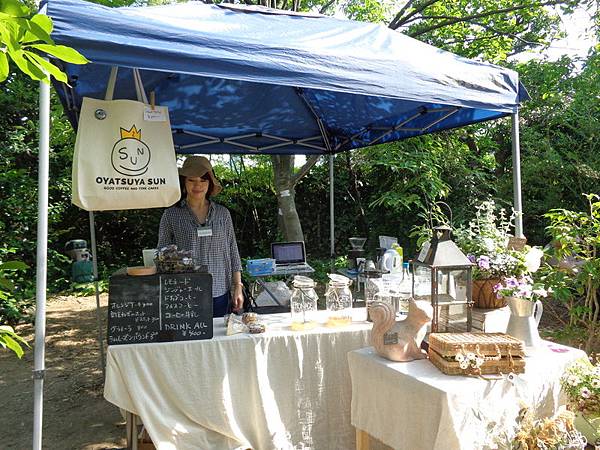 Go Green Merket和其他市集不太一樣的是,沒有明顯的攤位分區,也就是說這一區可能有食物和編織品,但是下一區也還是會有食物和編織品,不會某一區全部都是同一種類型的攤位。我覺得這樣的攤位配置蠻有趣的,再加上市集辦在花園裡,逛起來真的很有在花園迷宮裡探險的感覺。另外,在裡面的日本人們真的難得放鬆,大家就在大樹下或草原上「席地而坐」,甚至沒有鋪野餐墊,看在我眼裡,凡事都拘謹到不行的日本人的這種作為真的令我感到相當不可思議。